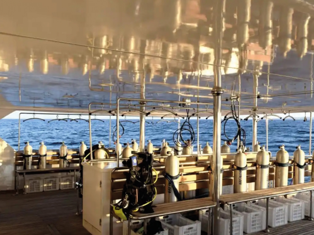 The spacious dive deck makes it easy to prepare and store equipment, with two dedicated zodiacs, air and Nitrox compressors, and an equipment rental service. Throughout the year, the Hammerhead II offers exceptional itineraries covering the most beautiful sites in the Red Sea: Elphinstone, Daedalus, Brothers, St John's, Rocky, Zabargad, as well as the legendary wrecks of the north, including the Thistlegorm and the Dunraven.